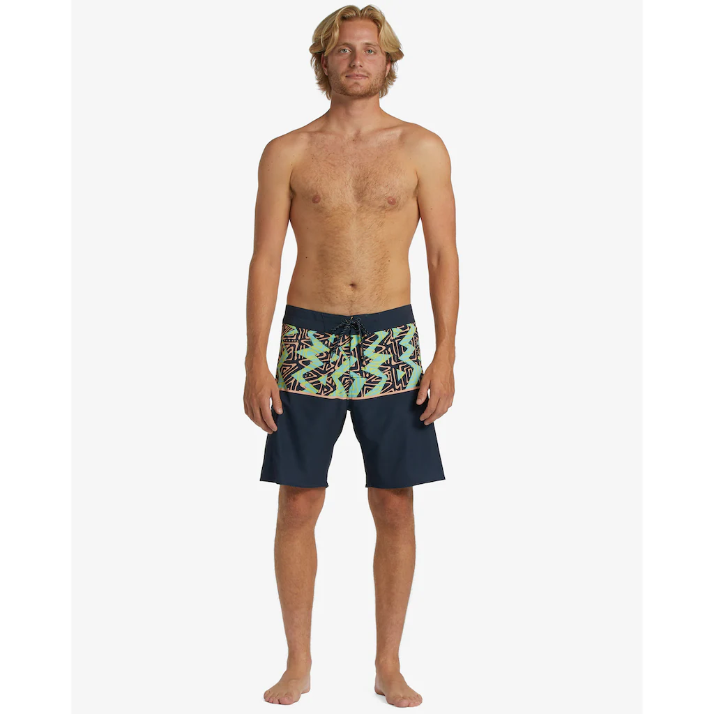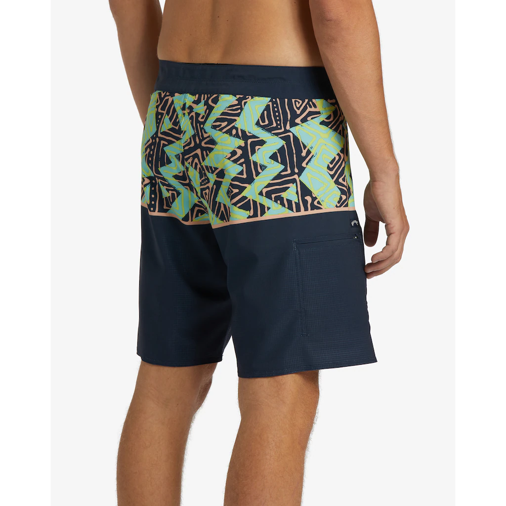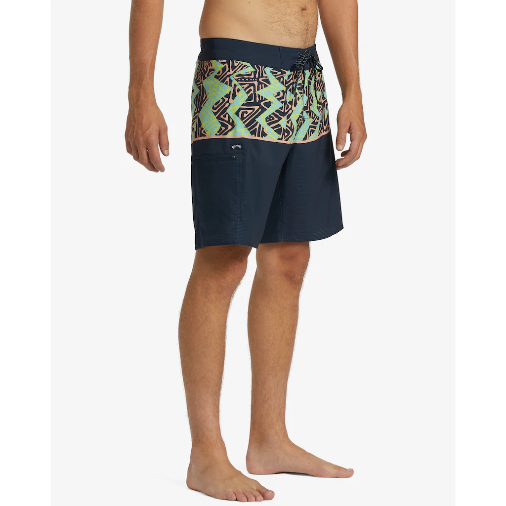 Performance-Boardshorts für Männer. Die Eigenschaften dieses Produkts sind: Umweltfreundliches Material: Jacquard-Mischgewebe aus recyceltem Polyester und Elastan, Ein Performance-Stoff aus recycelten PET-Plastikflaschen, Wasserabweisende Micro-Repel-Beschichtung für wenig Gewicht und einen schnelltrocknenden Stoff, Optimierter Performance Fit mit Panelen, um Nähte zu reduzieren, Stretch zu erhöhen und die Performance zu verbessern, TailleFester Bund, Verschluss:Fixiert mit Bindeverschluss, 48,3 cm Außennaht, mittlere Länge, Aufgesetzte Seitentasche.Fifty50 Airlite – Performance-Boardshorts für Männer