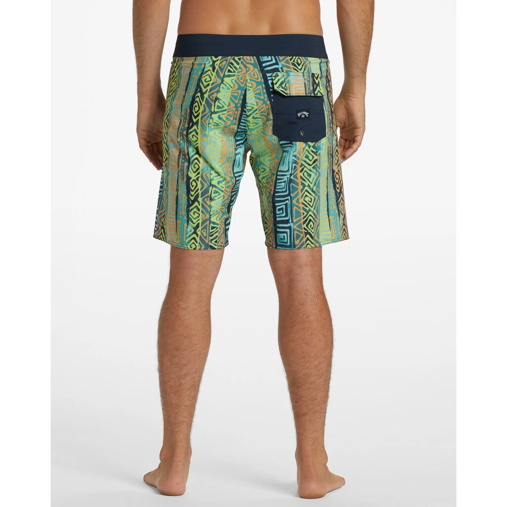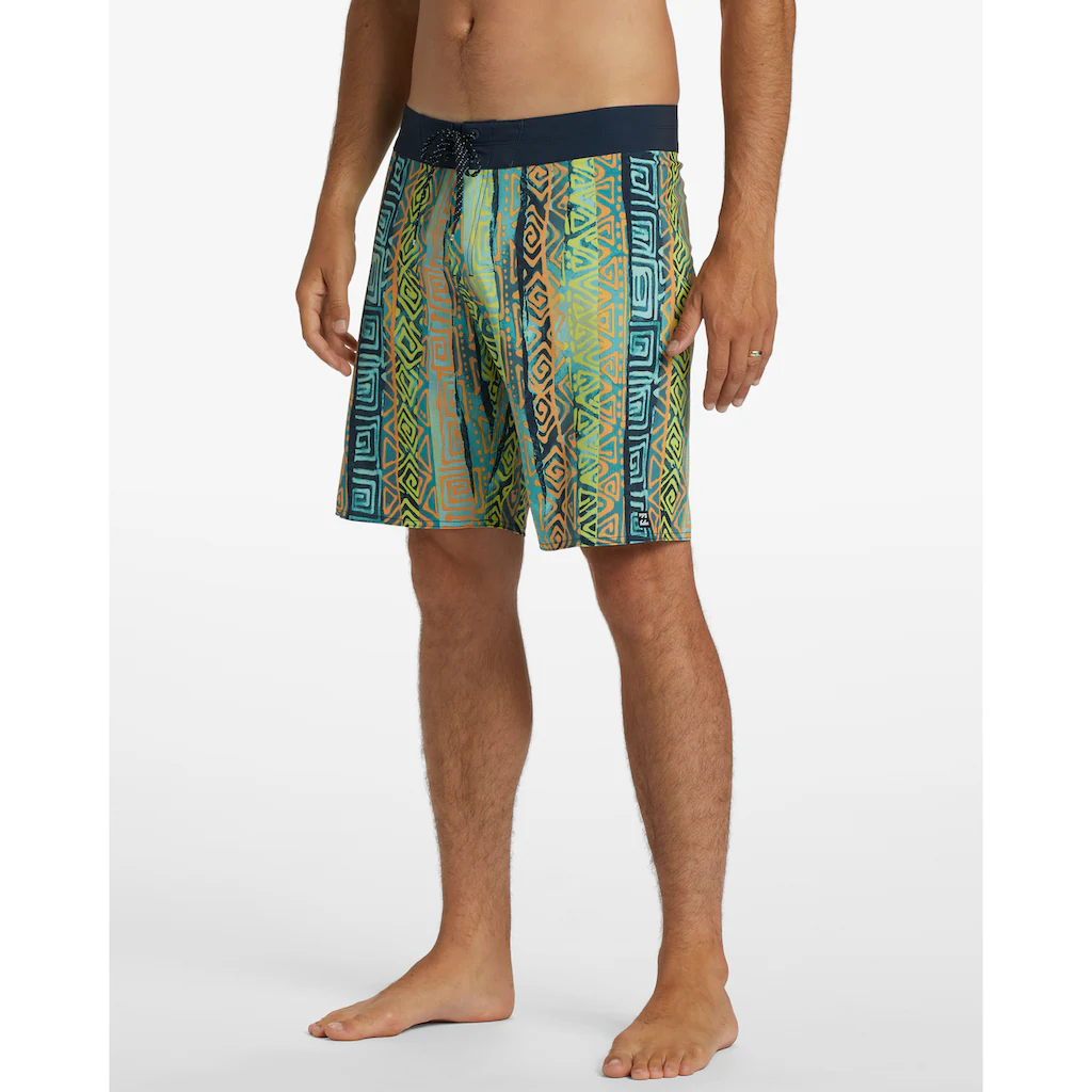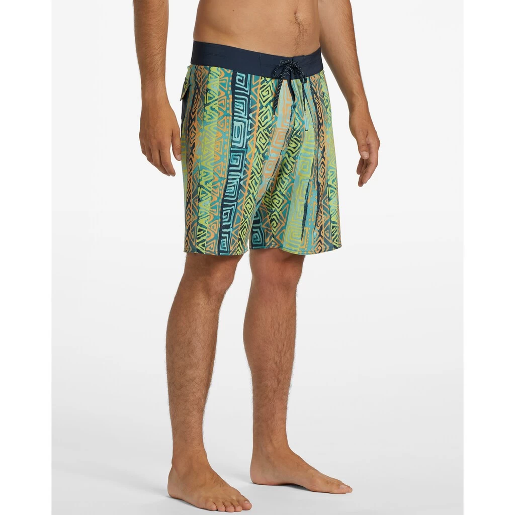 Performance-Boardshorts für Männer. Die Eigenschaften dieses Produkts sind: Umweltfreundliches Material: Jacquard-Mischgewebe aus recyceltem Polyester und Elastan, Ein Performance-Stoff aus recycelten PET-Plastikflaschen, Wasserabweisende Micro-Repel-Beschichtung für wenig Gewicht und einen schnelltrocknenden Stoff, Optimierter Performance Fit mit Panelen, um Nähte zu reduzieren, Stretch zu erhöhen und die Performance zu verbessern, TailleFester Bund, Verschluss:Fixiert mit Bindeverschluss, 48,3 cm Außennaht, mittlere Länge, aufgesetzte Gesäßtasche.Sundays Airlite – Performance-Boardshorts für Männer