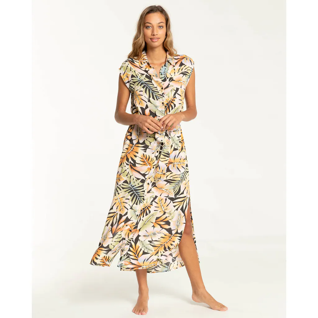Midi-Hemdkleid für Frauen. Die Eigenschaften dieses Produkts sind: Crinkle Viskose-Stoff, Straight Relaxed Fit mit seitlichen Schlitzen, Hemdkragen am Hals und Abnehmbarer Gürtel.Little Flirt – Midi-Hemdkleid für Frauen